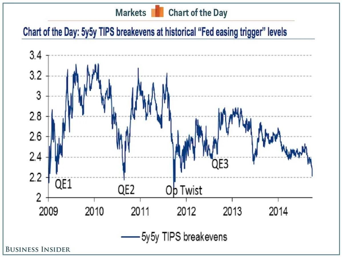 We postulated earlier this year that the Fed would sooner raise interest rates than end its QE money printing programs. We were wrong, QE ended before rates increased. However, we hold out the spectre that, eventually, perhaps this month, the Fed will need to increase its target rate. When it does, it will cause big problems for large banks. Banks will need a buyer for the masses of Treasuries they have to hold as a result of Dodd-Frank. The Fed will buy them at cost (not market, as their market value will be dropping), effectively reinstating their QE program.